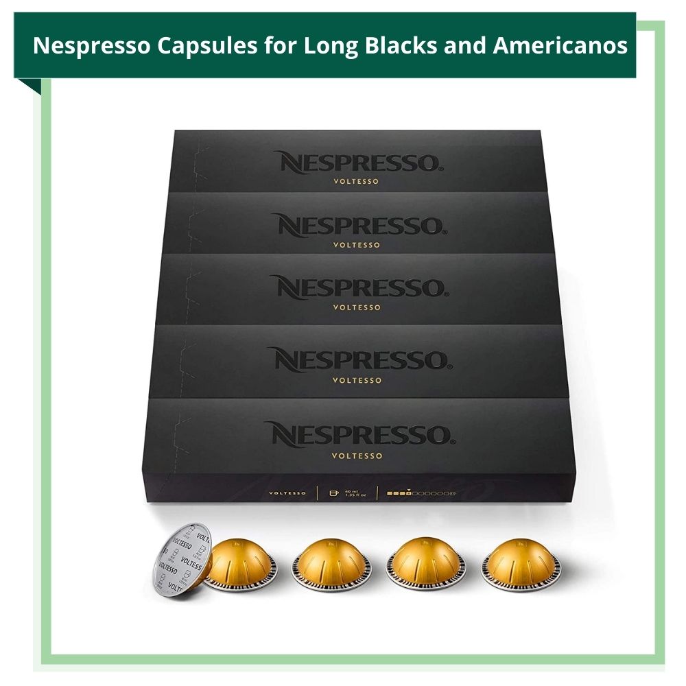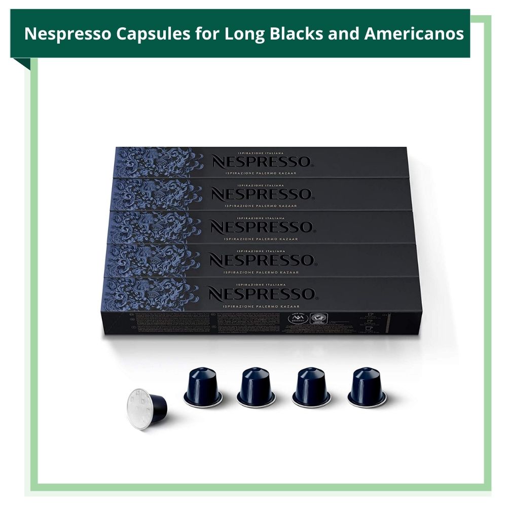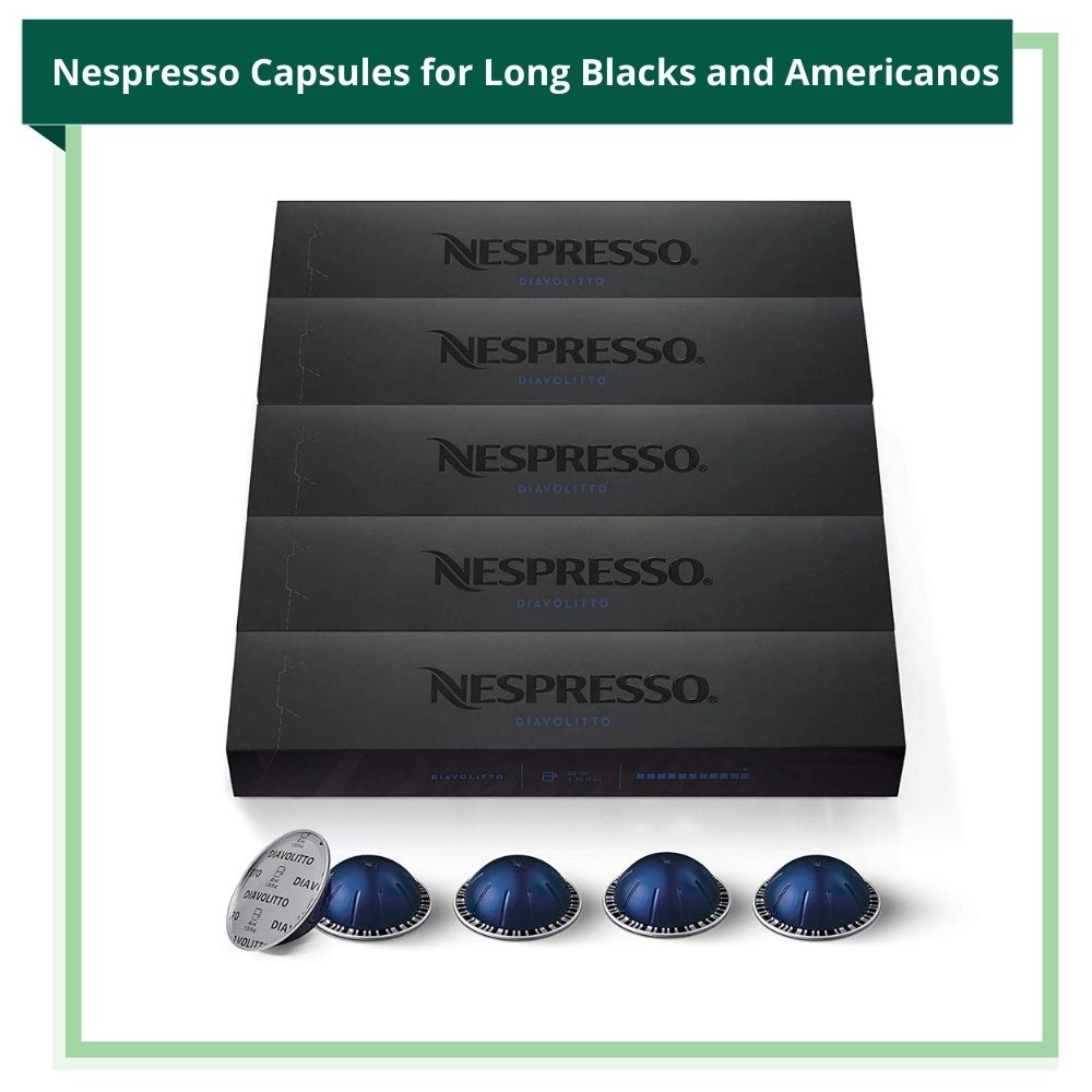 100% Arabica, which is what the best Nespresso capsules contain, is always the best coffee bean to make long blacks and Americanos. The best Nespresso OriginalLine Capsules for making long blacks and Americanos are the Ristretto Intenso, Linizio Lungo, and the Kazaar Intenso. The best Nespresso Vertuoline capsules for making long blacks and Americanos are Diavolitto and Voltesso.