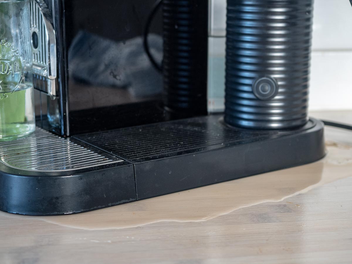 This usually starts when you switch on the machine and leads to the formation of water puddles or droplets on the countertop below. Try lifting up the machine immediately after use to check for pooling. The amount of water loss can vary depending on the extent of the issue.
